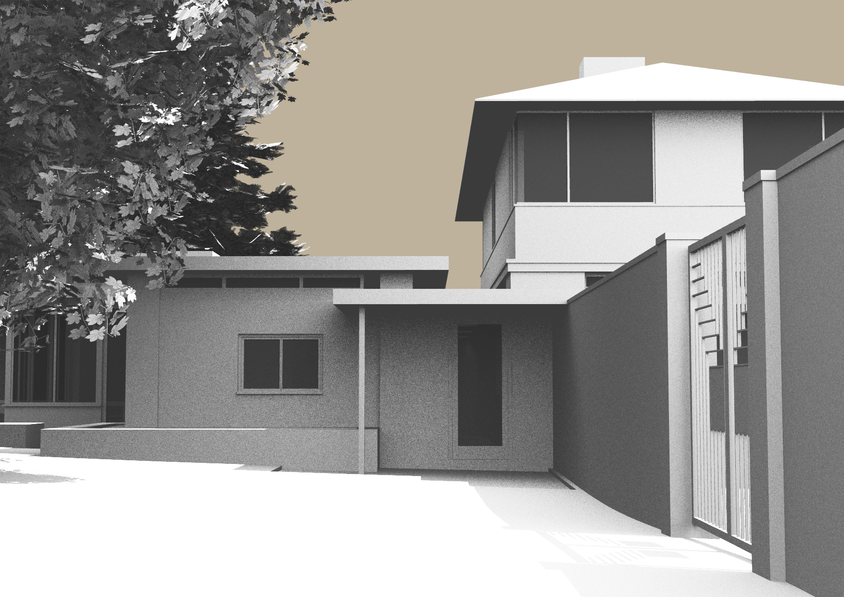 The house incorporates references to the work of Frank Lloyd Wright. The sensitive siting and scale of the extension distinguishes it from the main house while remaining sensitive to Harper’s original design.