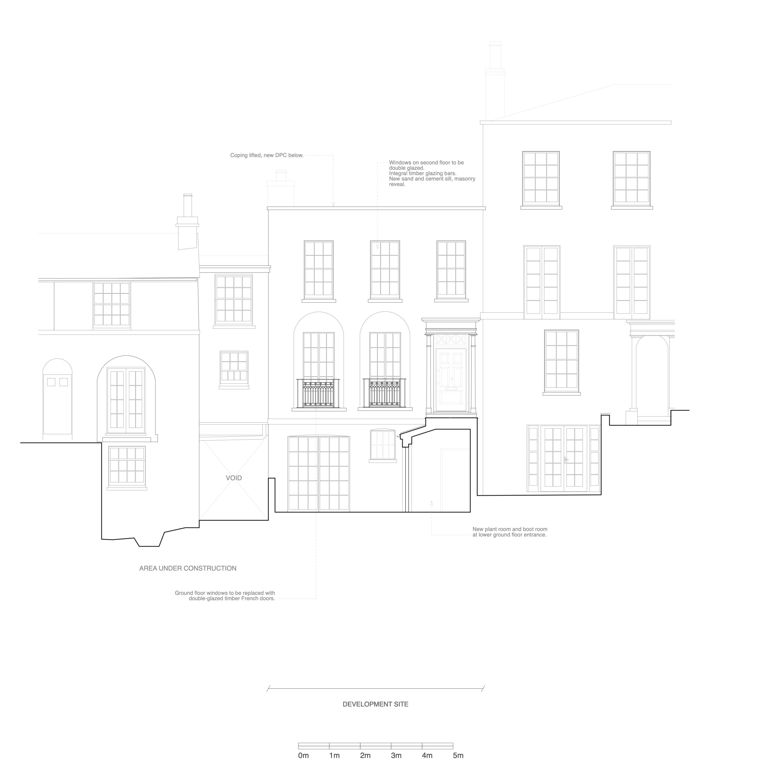 The house appears to be a typical Georgian terrace and is adjoined to two Grade II listed houses of similar appearance. The site is however not listed. Research undertaken by ourselves and heritage consultant Jon Lowe Heritage revealed the house to have been almost entirely rebuilt in the early twentieth century, explaining the lack of a listing.