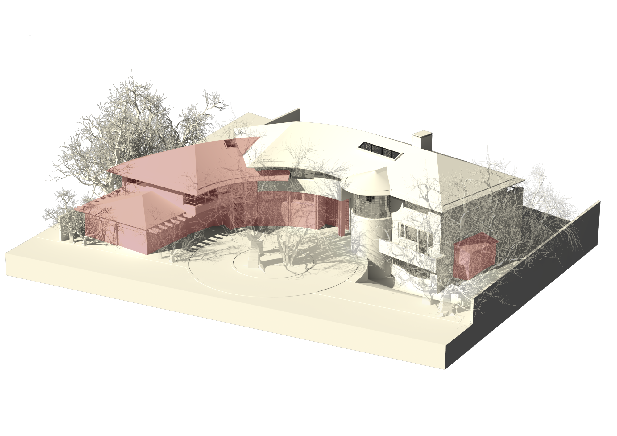 The original house on site is semi-circular in plan, which we are extending along the same line in tandem with internal refurbishment and a separate basement contract.
