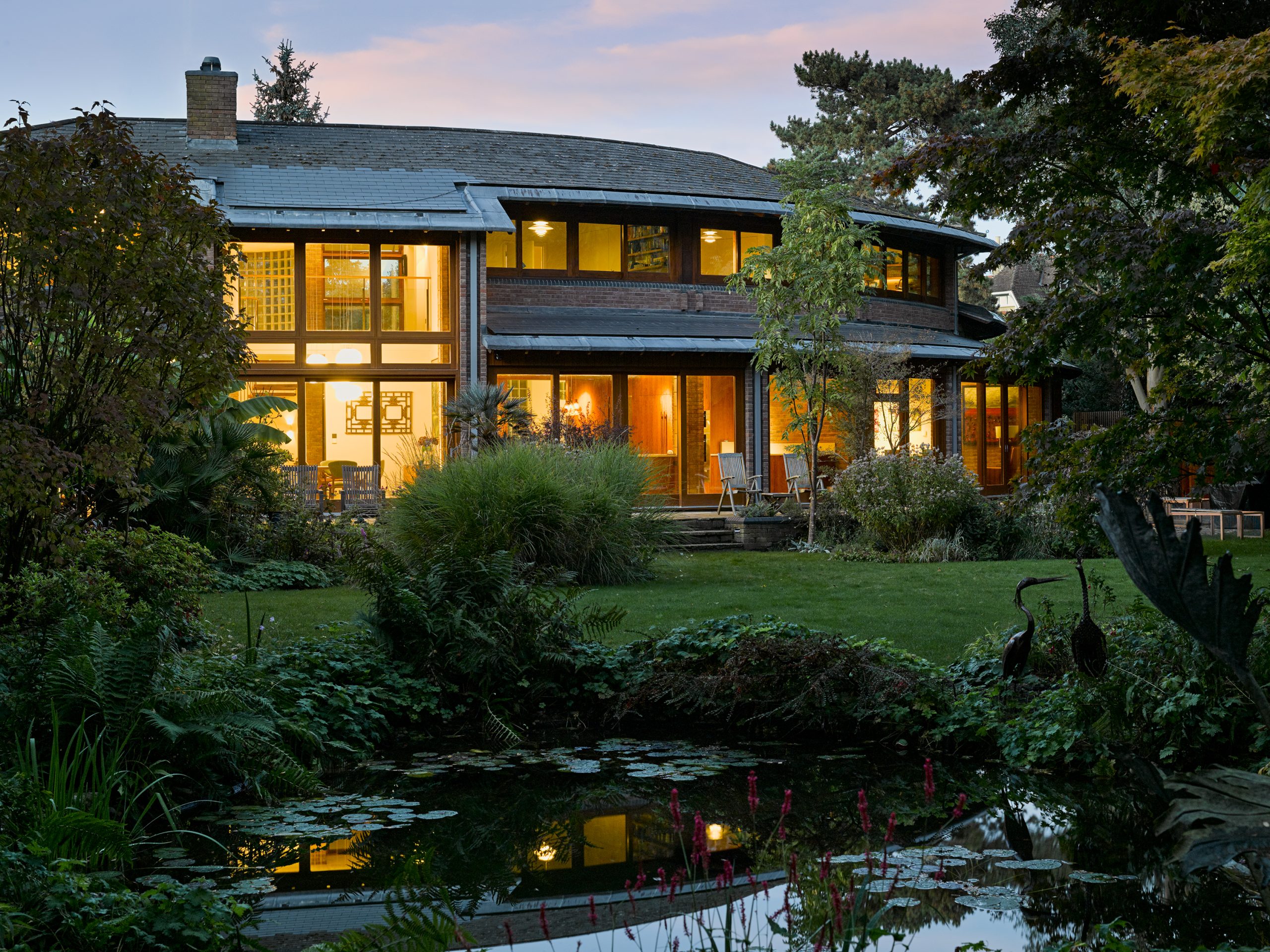 We were asked to help refurbish a 1980’s house bordering Richmond Park. It has a remarkable garden and the semi-circular plan of the existing house made the most of views out onto it. In our response we built on this opportunity, rationalising the plan and extending the living spaces out to engage more closely with the garden. It was a major re-imagining of the interior and brought a level of finish and elegance that had not been present in the original house.